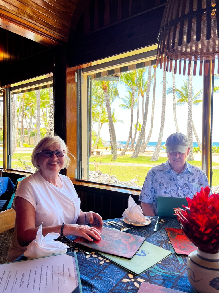 Once we arrived at Mama’s Fish House, we were seated at what felt like the best table in the house, right by the window overlooking their private beach. The setting was perfect, and the food? Unbelievable. I ordered the Mama’s Mahi Mahi, Ono, and Ahi Curry, and Jordan had the Hawaiian Kanpachi with Lobster and Crab in a Macadamia Nut Crust. Hands down, my curry was the best I’ve ever had. Caroline, Amy, and I couldn’t get enough of the passion fruit tea—we probably had three each!
