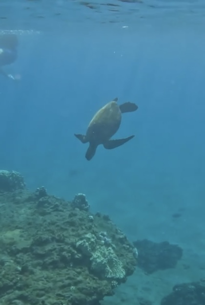 We started the day bright and early with some snorkeling at Honolua Bay with Caroline and Amy. This spot was incredible! It’s located on private property, but the owner is kind enough to allow tourists to visit as long as everyone is respectful. The walk down to the beach was a peaceful 10-15 minute stroll through a lush rainforest filled with tropical plants. The pothos vines were massive, adding to the enchanting vibe of the trail. When we finally got to the beach, it was stunning. The water was crystal clear, and we didn’t have to wait long before we saw our first sea turtle! Honolua Bay easily had the best visibility of all the spots we snorkeled. Throughout our swim, we spotted five sea turtles, an eel, and a bunch of colorful fish. Definitely my favorite snorkeling experience so far!