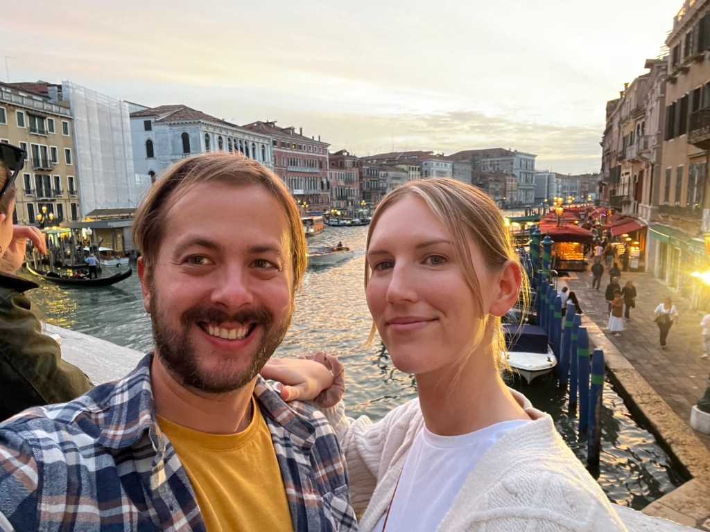 After months of planning, we’ve finally arrived in Venice! Our journey started with a Saturday afternoon flight out of Tallahassee at 2 pm, and after a long travel day, we landed in Venice at 11 am on Sunday—4 am back home in Eastern time! Once we collected our bags, we purchased water taxi tickets and set off to the island. Jordan was a bit concerned about me getting motion sickness on the vaporetto, but honestly, I was so tired that I was more likely to fall asleep than feel queasy!