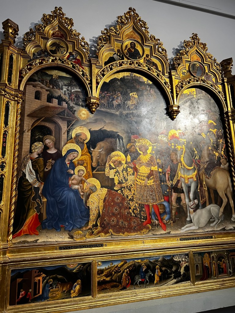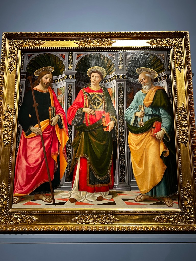 One thing I loved about the Uffizi was seeing how art evolved through the centuries. Early pieces had no dimension, but as we moved through the gallery, we saw how artists began using vanishing points to add depth and volume to their work.
