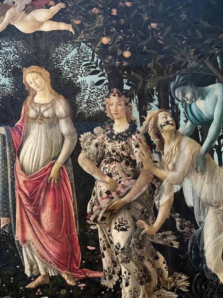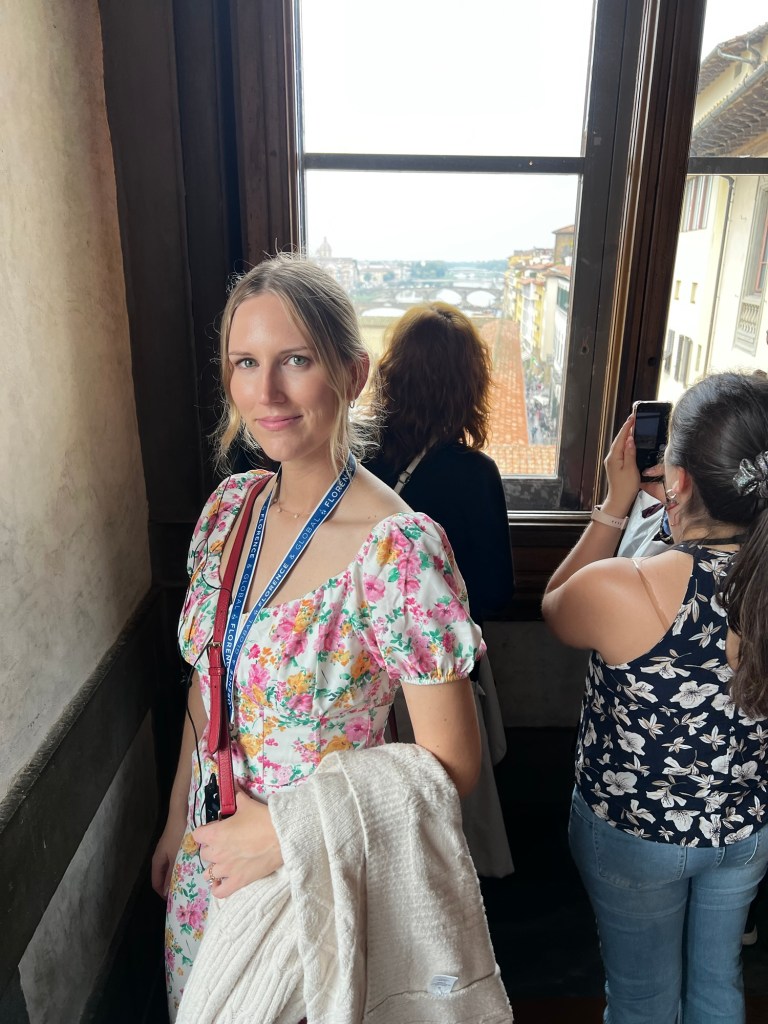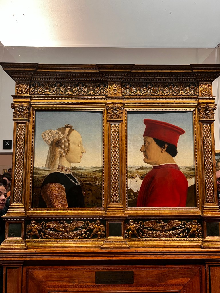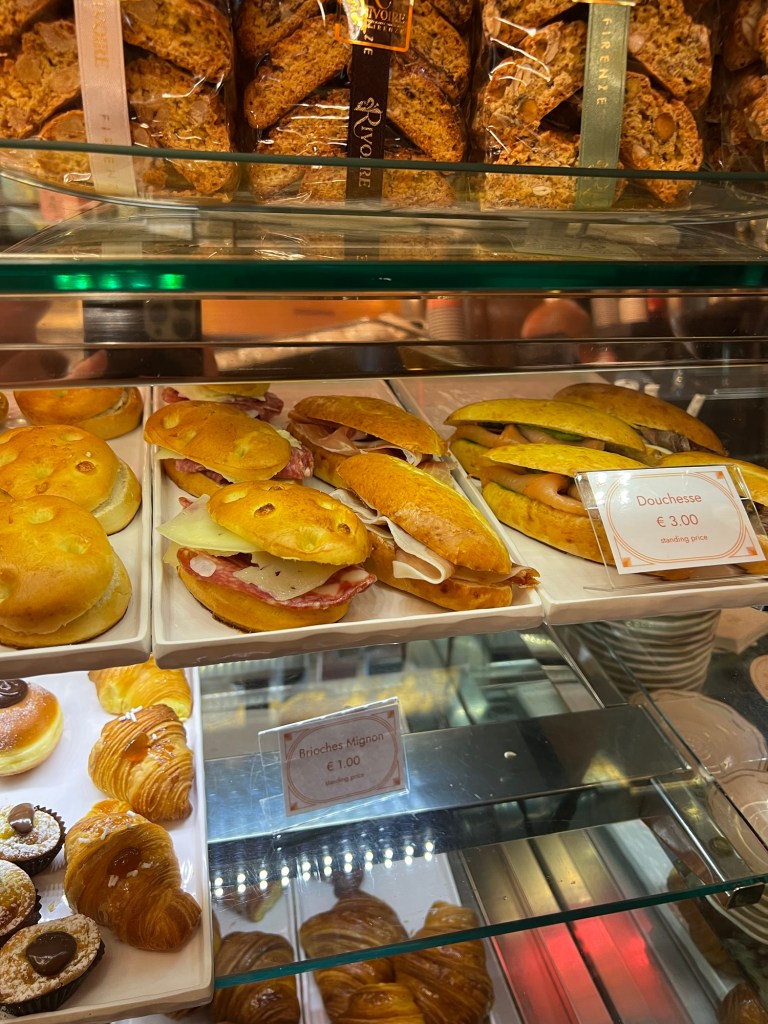 After the Accademia, we took a quick break at a café for some tea sandwiches and a pistachio croissant—perfect fuel for the next part of our day: the Uffizi Gallery. This place was overflowing with masterpieces from artists like Leonardo da Vinci, Botticelli, Raphael, and even Michelangelo’s only oil painting. Fun fact: the Uffizi started as the Medici family’s personal art collection!
