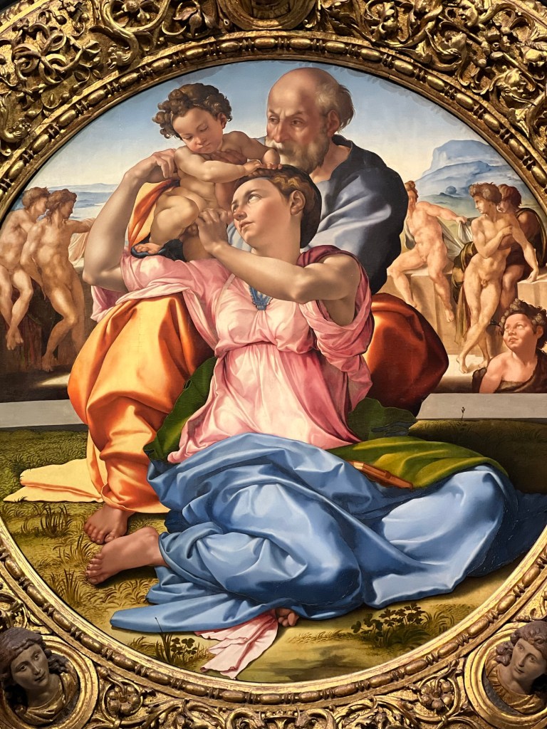 A few standouts included the first oil painting (I can’t remember if it was the first in Italy or the world, but it was significant!) and Michelangelo’s Doni Tondo, a circular painting commissioned for a child’s baptism.