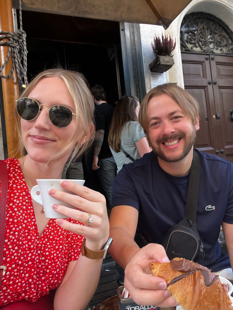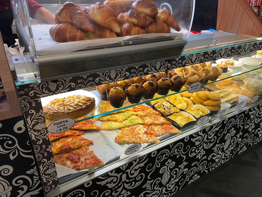 It was such a relief that our Vatican time slot wasn’t until 1 PM, giving us a chance to catch up on some much-needed rest. We kicked off the day at a little café near our hotel called Il Baretto. Sitting outside in the crisp morning air with a view of the street, we enjoyed three cappuccinos, a croissant, a donut, and an egg sandwich—all for only €18! It’s incredible how much cheaper food is here compared to back home.