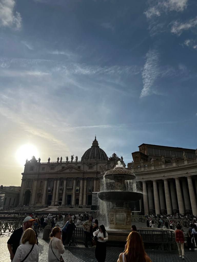 After leaving the Sistine Chapel, we took a break at the Vatican cafeteria, enjoying some pizza before heading to our next stop: St. Peter’s Basilica.
