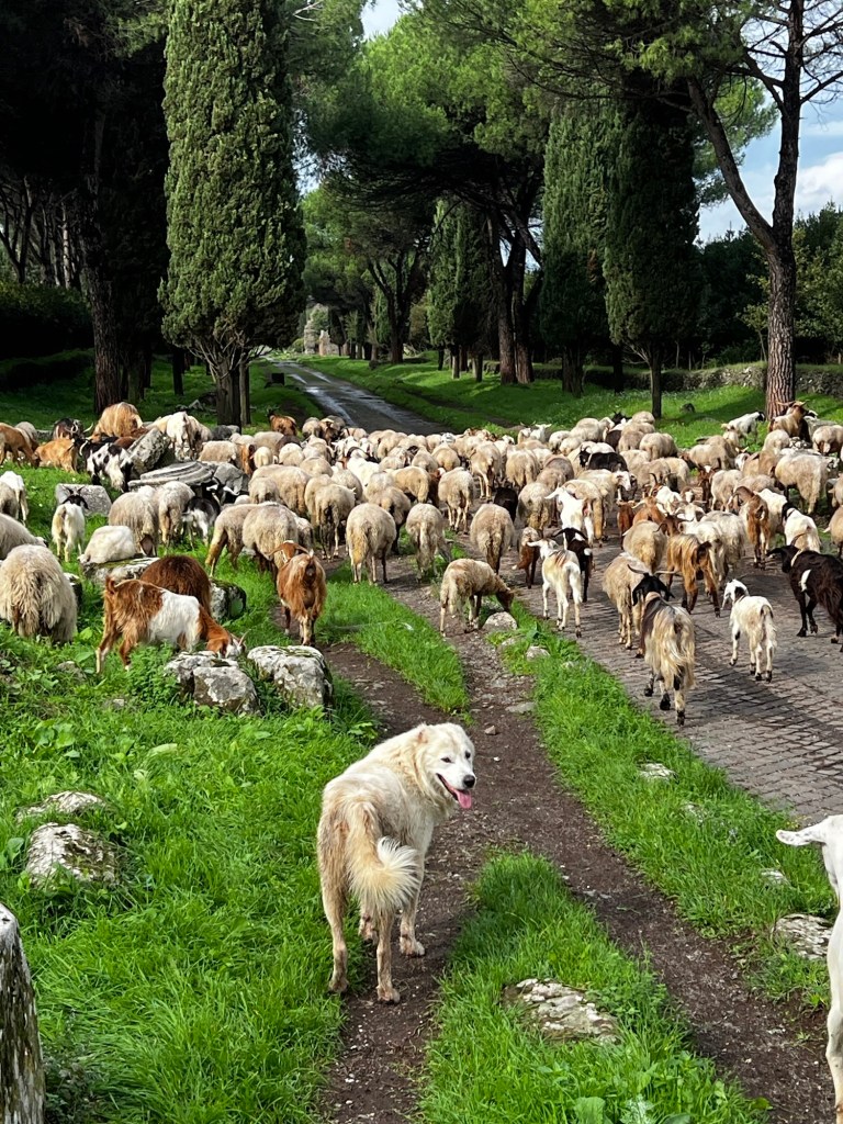 At one point, I noticed something strange in the distance. It looked like sheep, but I thought, “no way.” Turns out, it really was a herd of sheep and goats! We pulled over, found some rocks to stand on, and watched the animals pass by, herded by a few dogs. It was so unexpected and hilarious!