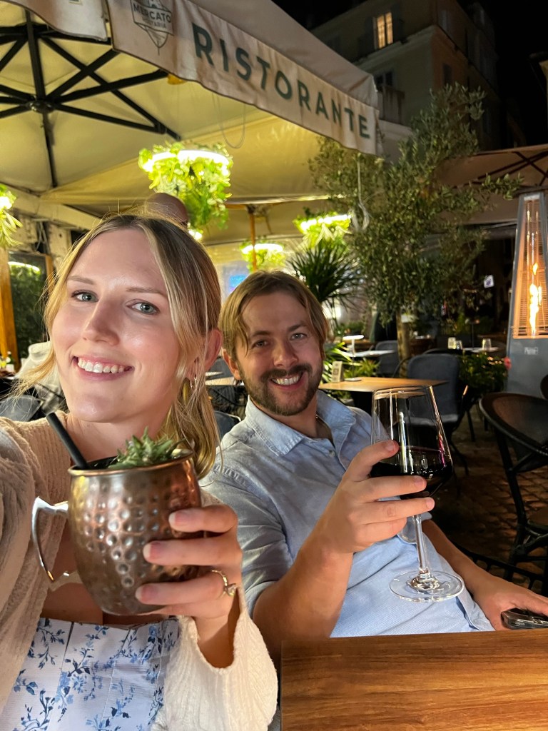 After dinner, we snapped a few photos at the Spanish Steps, then grabbed a taxi back to the hotel. Not ready to call it a night, we ended with a nightcap at a cozy spot in Campo de Fiori, overlooking the square.