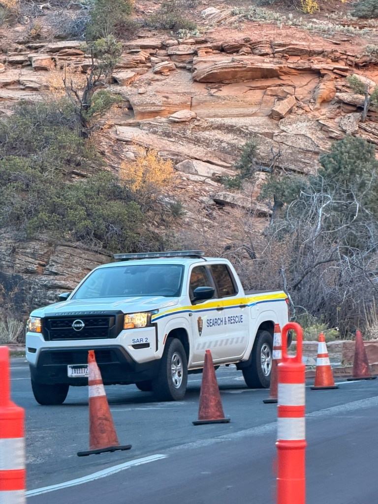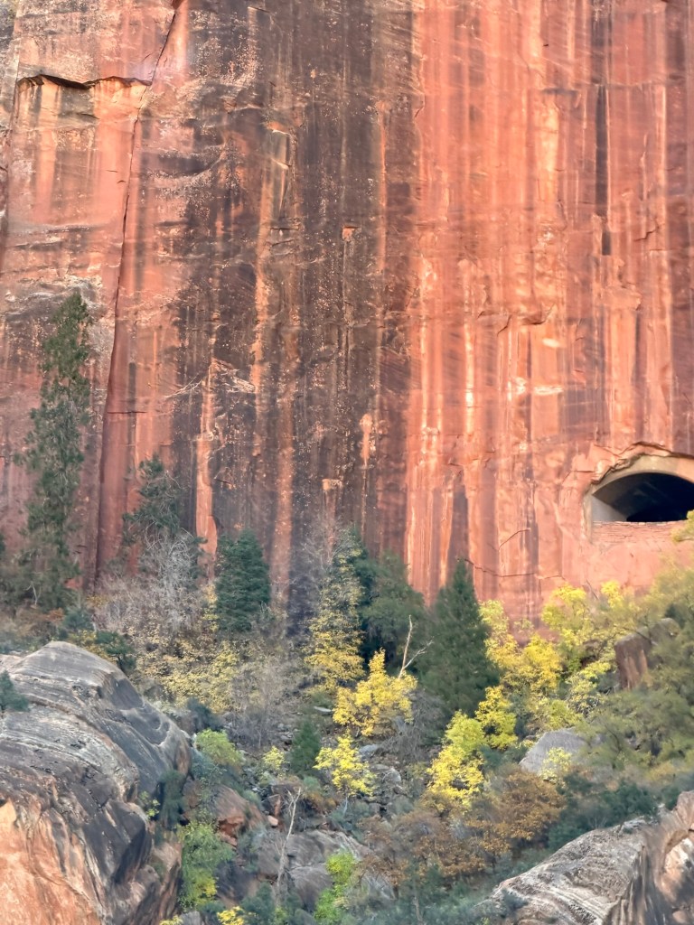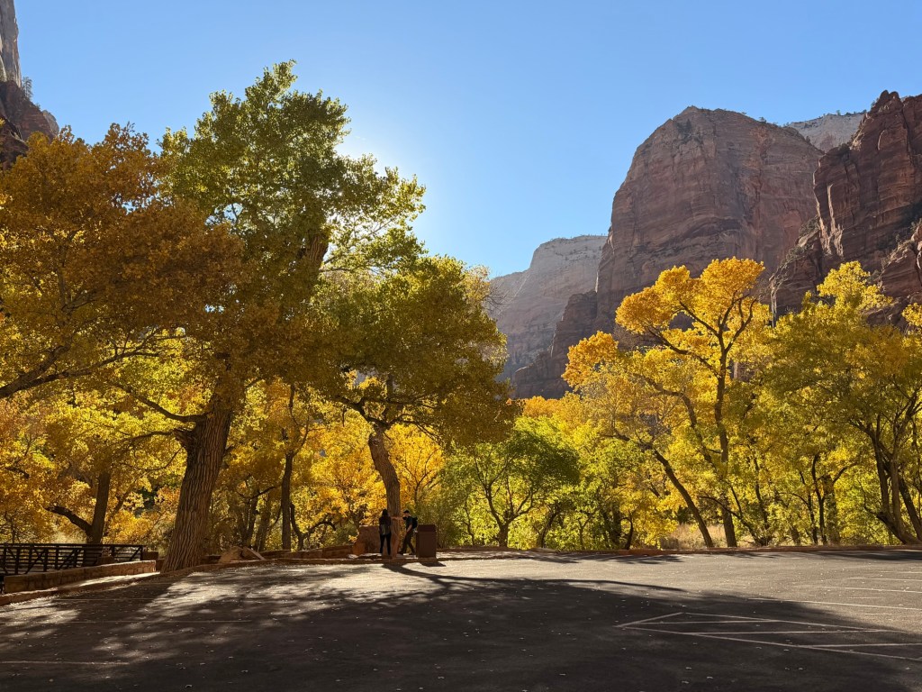 A quick note about the park layout before I continue on: Zion has two main roads. Zion Canyon Scenic Drive, which heads north and dead-ends at the Temple of Sinawava (where the Narrows hike begins) and the Zion-Mt. Carmel Highway which exits the park to the east. In peak season, private vehicles aren’t allowed on the Zion Canyon Scenic Drive, only park shuttles and e-bikes are. The east road, however, stays open to cars and no shuttles run this route.