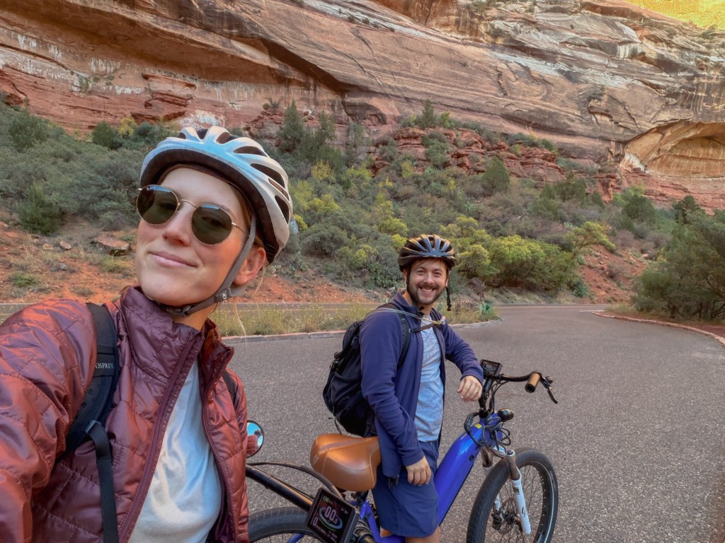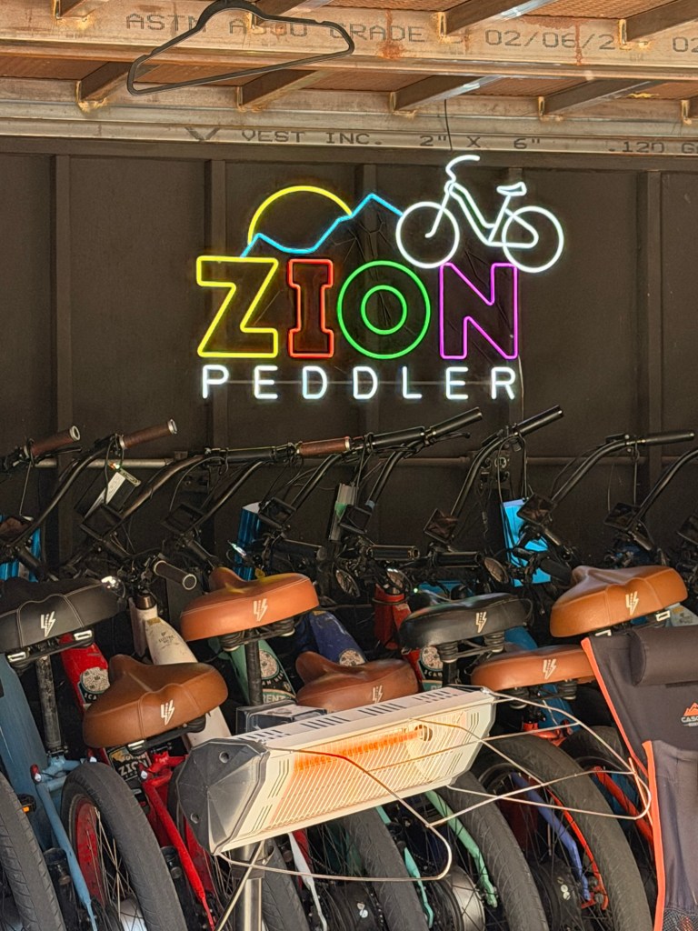 We had planned on e-biking after the trail anyways, so we headed over to Zion Peddler to rent some bikes and check out the Zion Canyon Scenic Drive by bike.