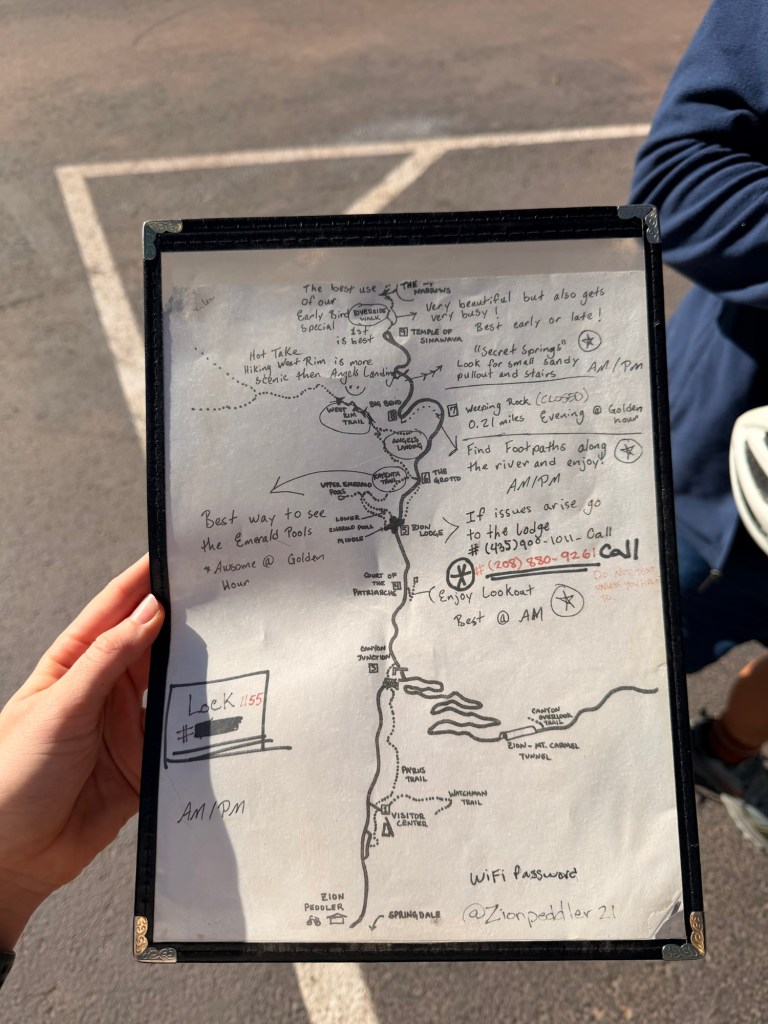 At this point we were absolutely dying to get out there and start exploring, but we had to get through all the waivers and rental process. They explained the stops of the park and the rules of the road (basically just stop and pull over for those shuttles whenever they come up behind you) and we were on our way!