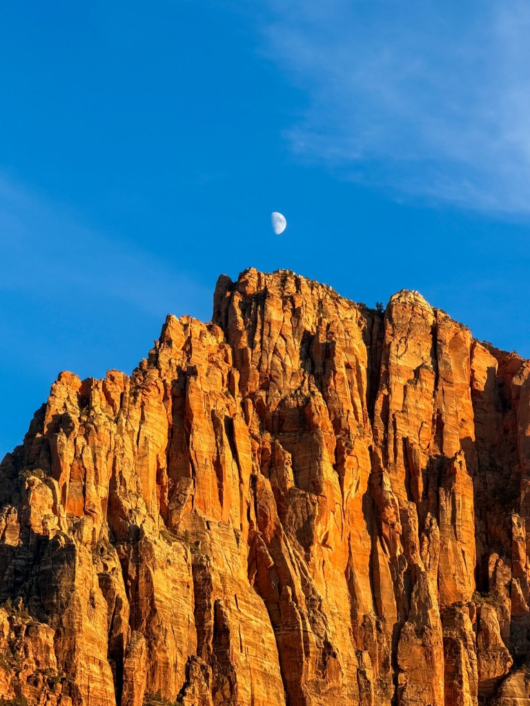Since the e-bikes were due back at 7:45 PM and we didn’t want to be out past sunset on the Scenic Road, we made much better time heading back down. The ride was easier since we’d already hit all the main stops going up, and we only paused if a shuttle was behind us or if we spotted wildlife. It was such a blast biking through the canyon, and I think Zion is one of the few places where you can do that kind of ride safely and comfortably.