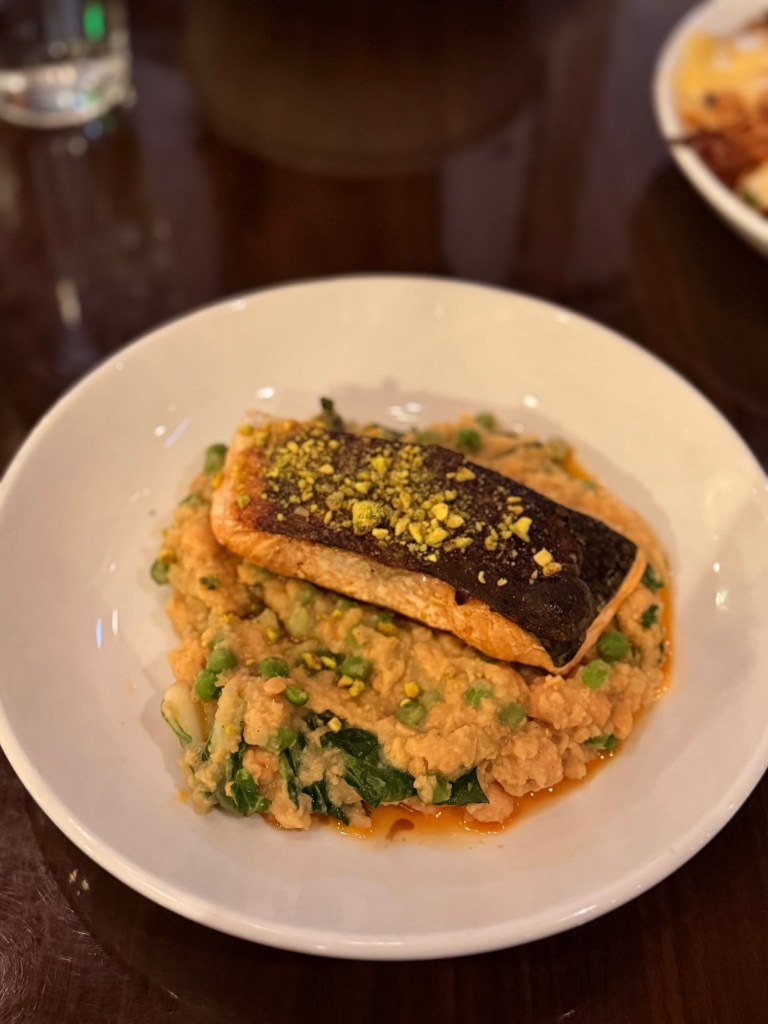 After dropping off the bikes, we were starving and started googling nearby restaurants. Anthera popped up with great reviews and pictures of a beautiful outdoor patio, so we decided to give it a try. I’m big on ambiance when it comes to dining, and we love eating outdoors (especially with the mountains all around) so it seemed like the perfect spot. Unfortunately, the patio was closed, but we still got a nice table inside with a good view and ambient live music drifting in from the room next door. Everything we ordered was delicious. Jordan and I both had the salmon, which was amazing, and Tyson’s steak was just as good.