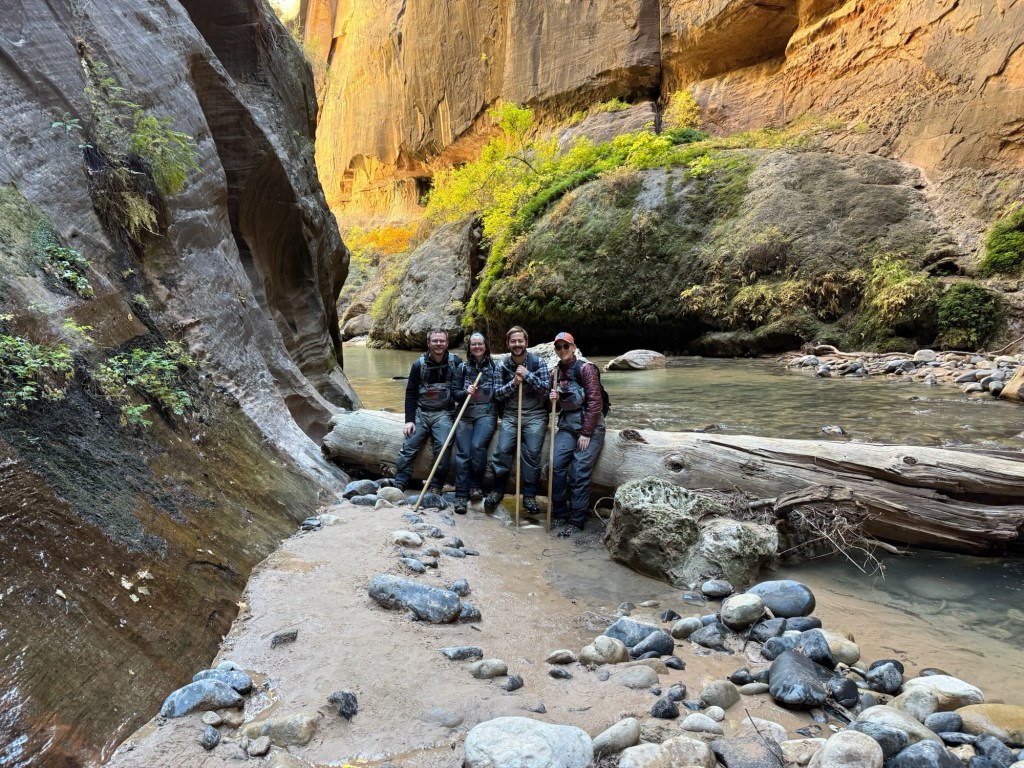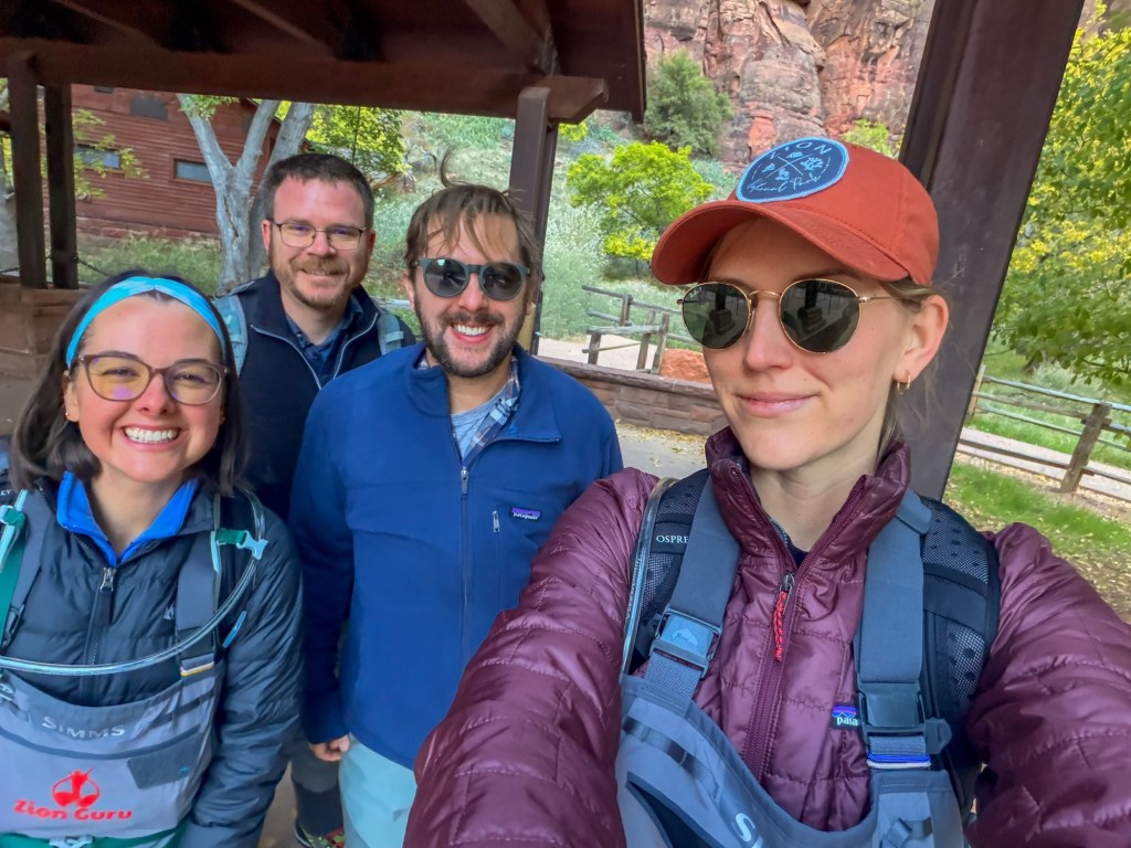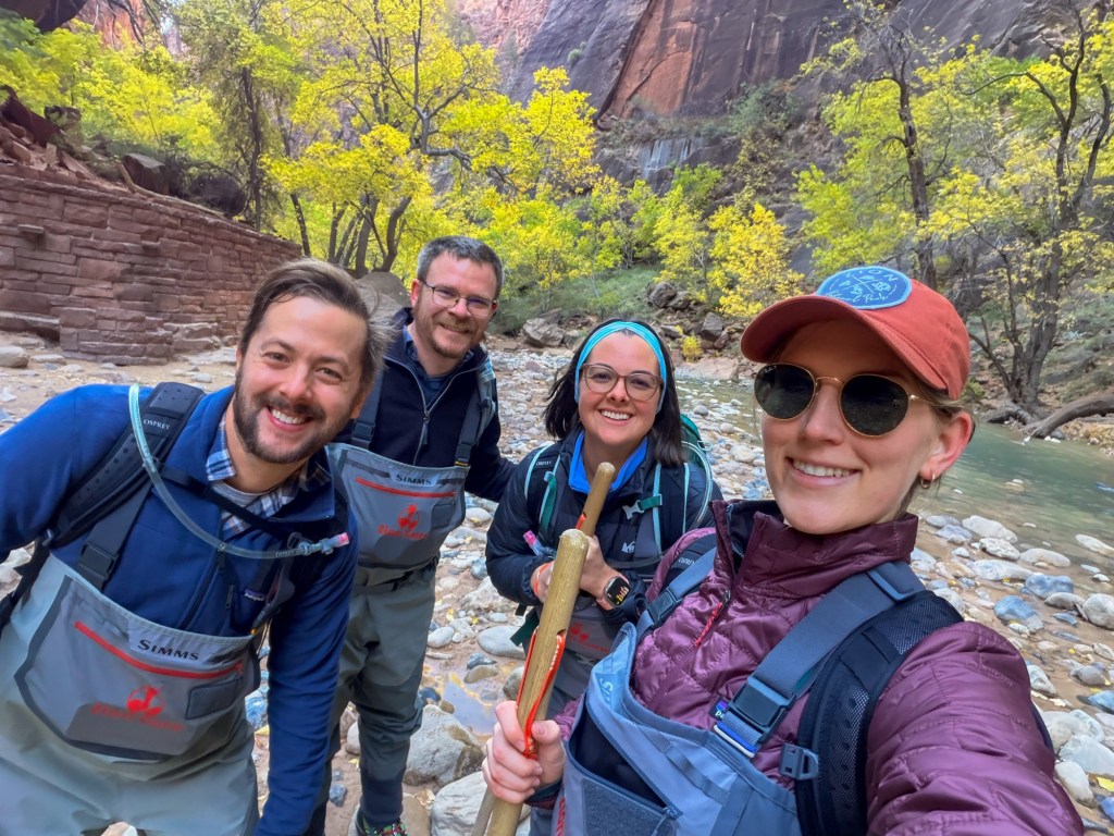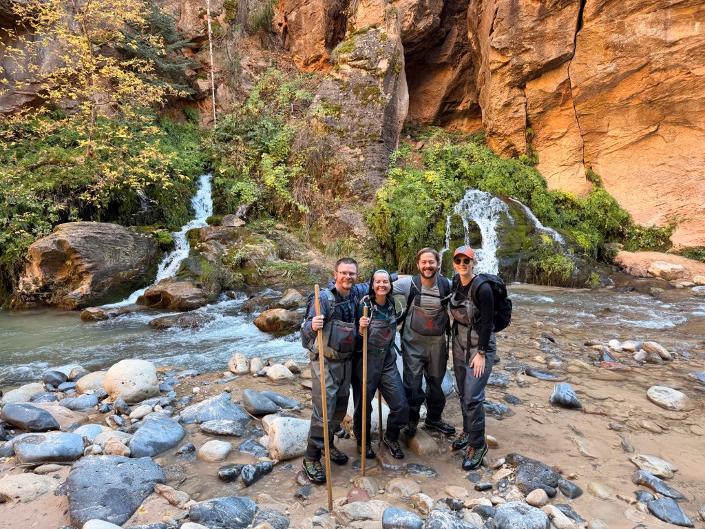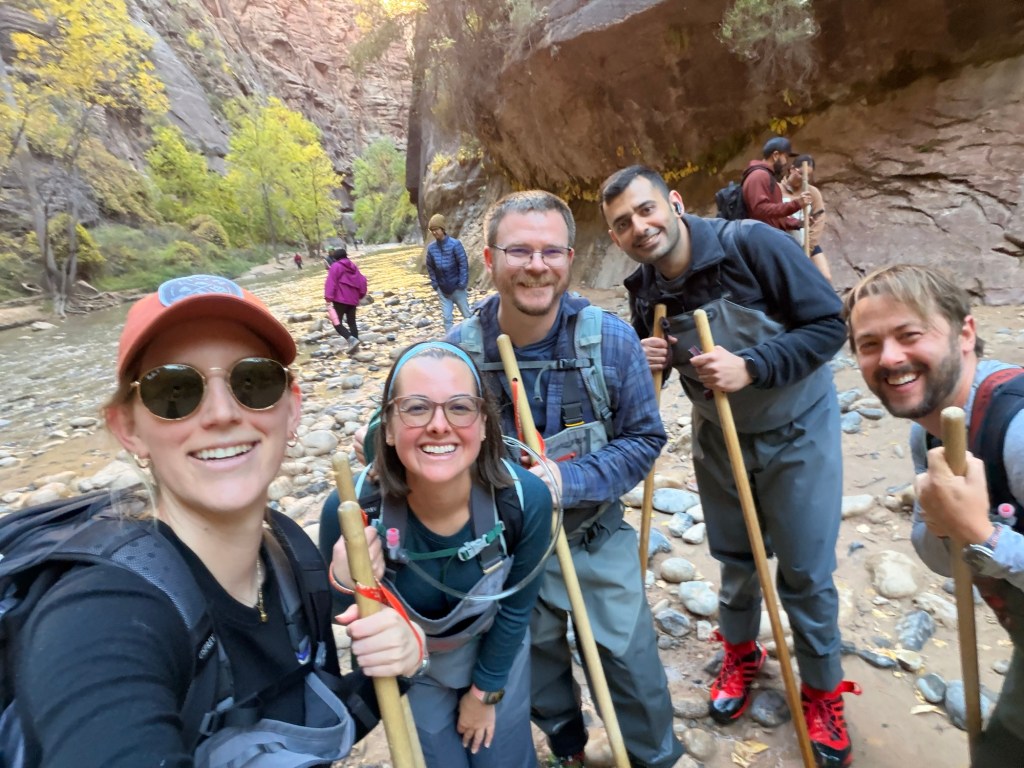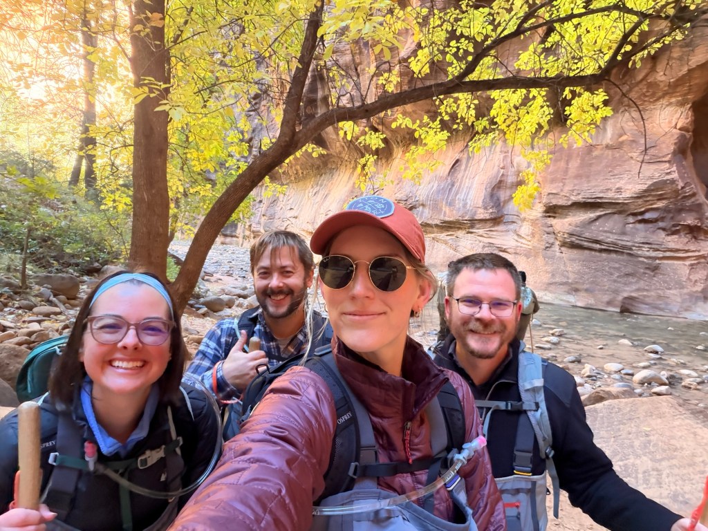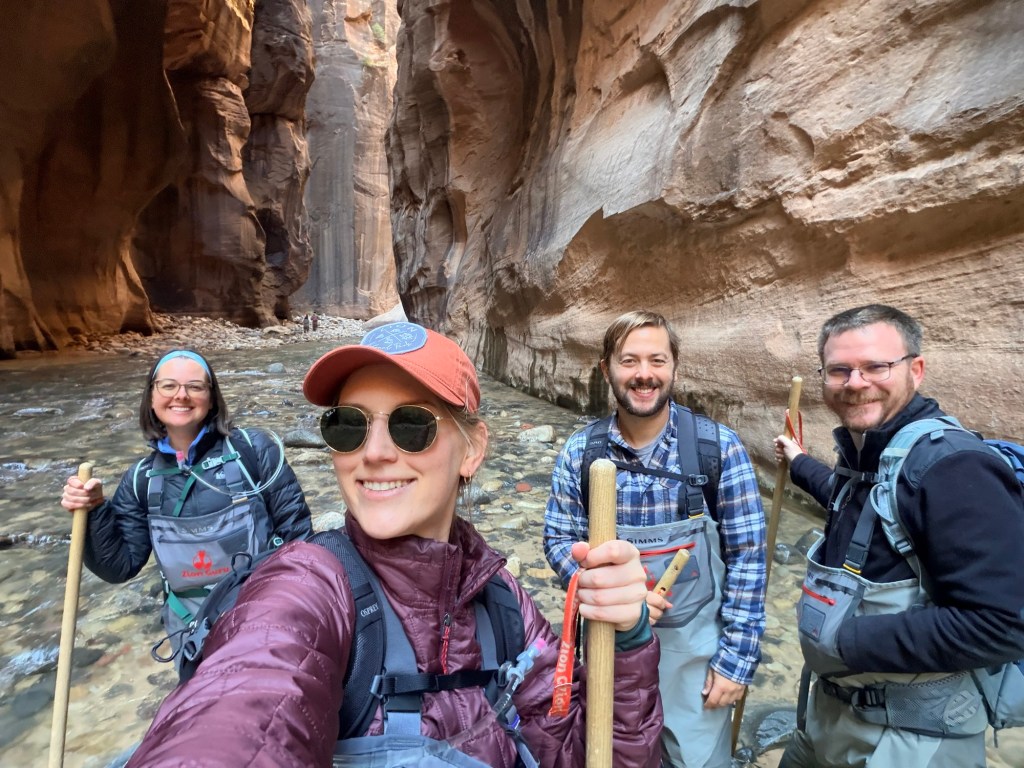 Eventually, Wall Street opened back up and the river widened again. A kind solo hiker offered to take our photo, which I will never turn down a good group photo opportunity.