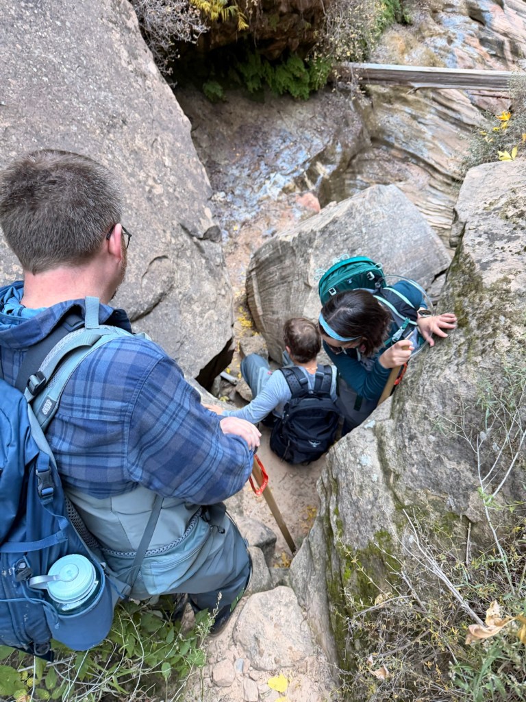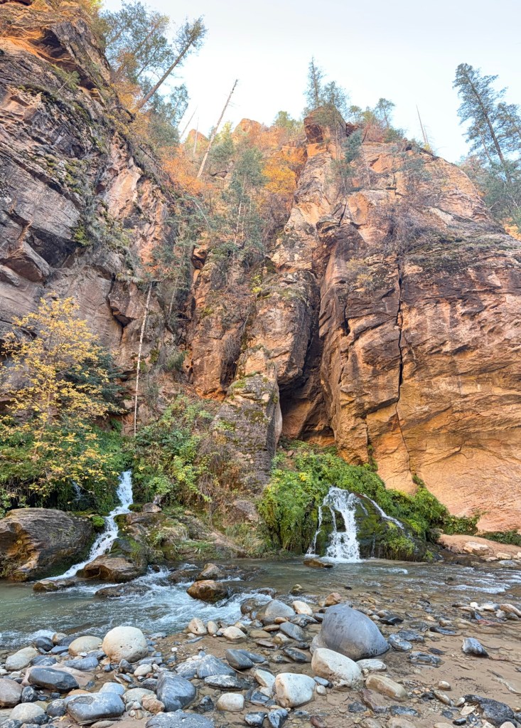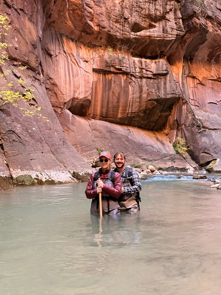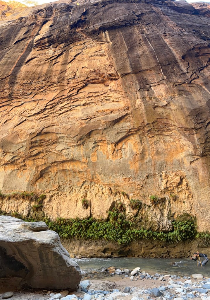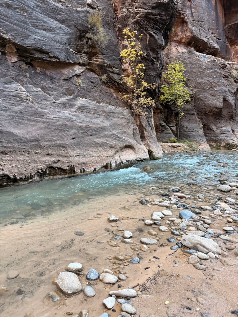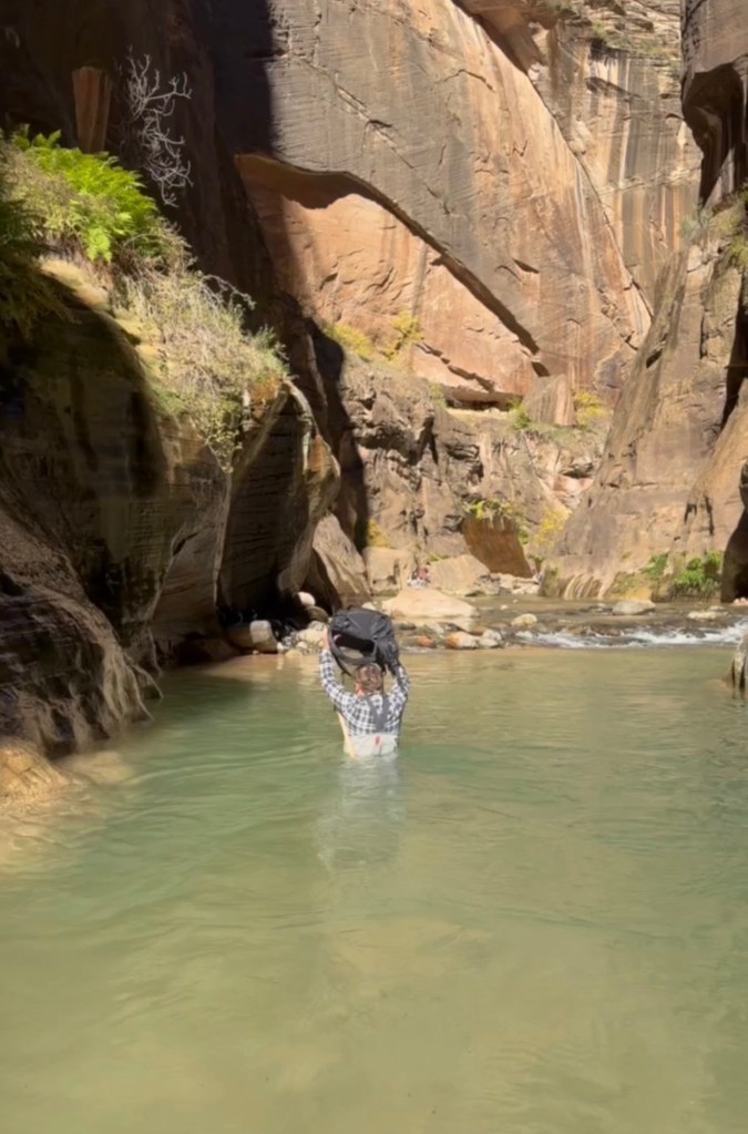About three hours in, Caroline and I reached an unexpected challenge, finding a bathroom spot. Peeing in the Narrows is surprisingly difficult thanks to the number of people and the lack of privacy. Somehow, we lucked out and found a little cave you could climb into, completely surrounded by rocks. Crisis averted. We did find a beautiful photo spot not long after too!