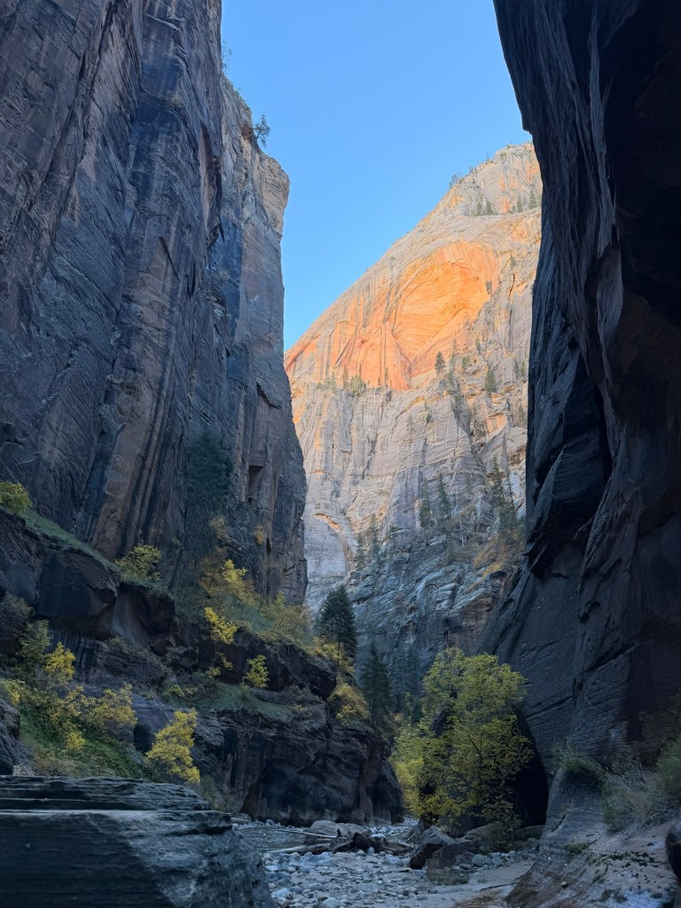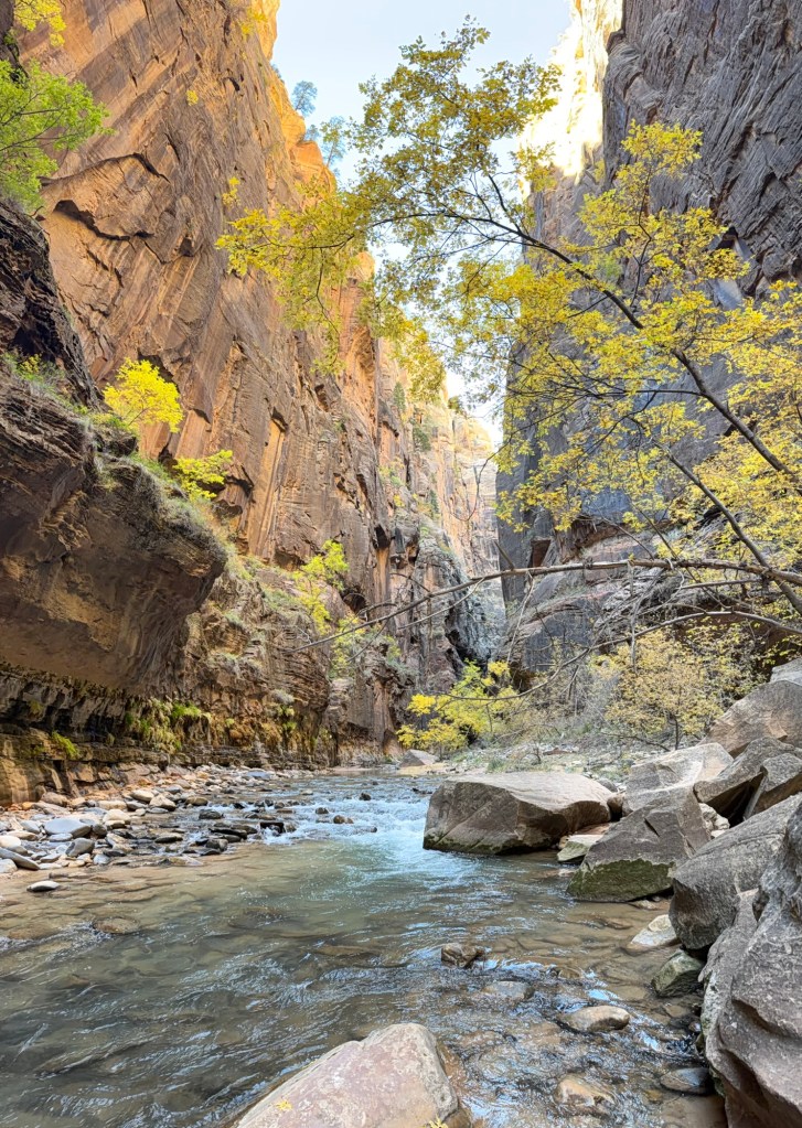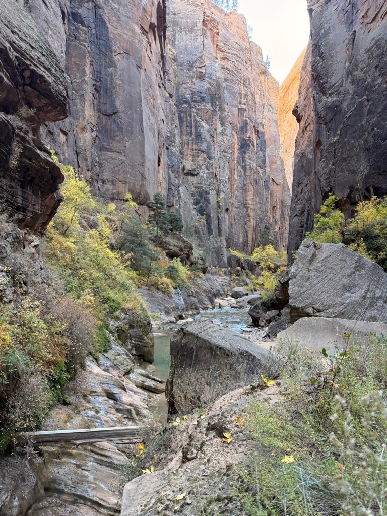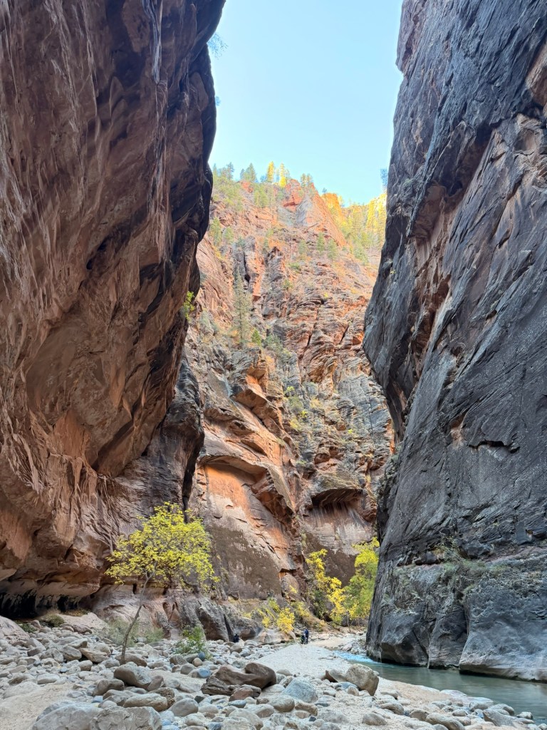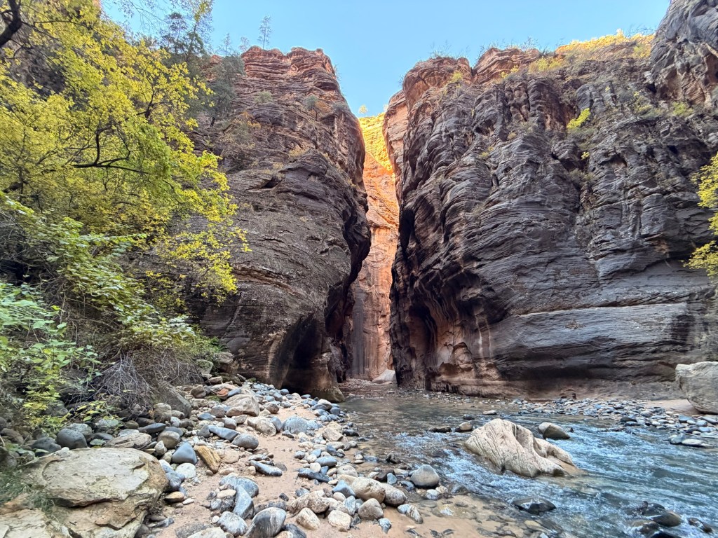 It felt like a big accomplishment to finally reach Wall Street, which is about 2 to 2.5 miles in. This was one of the coolest sections of the hike. The canyon walls rise straight up on either side, making everything feel surreal and almost otherworldly.
