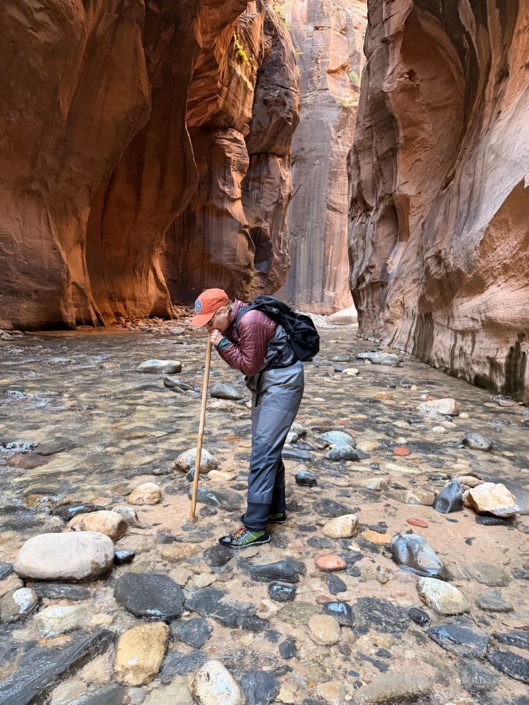 Thank goodness for the bib rentals in Springdale. Without them, I think we would have been absolutely freezing. The hike is slow by nature because there is no real trail. You are constantly choosing which rocks look stable, crossing and recrossing the river as the depth changes. That is what makes the Narrows so unique and unlike any other hike.