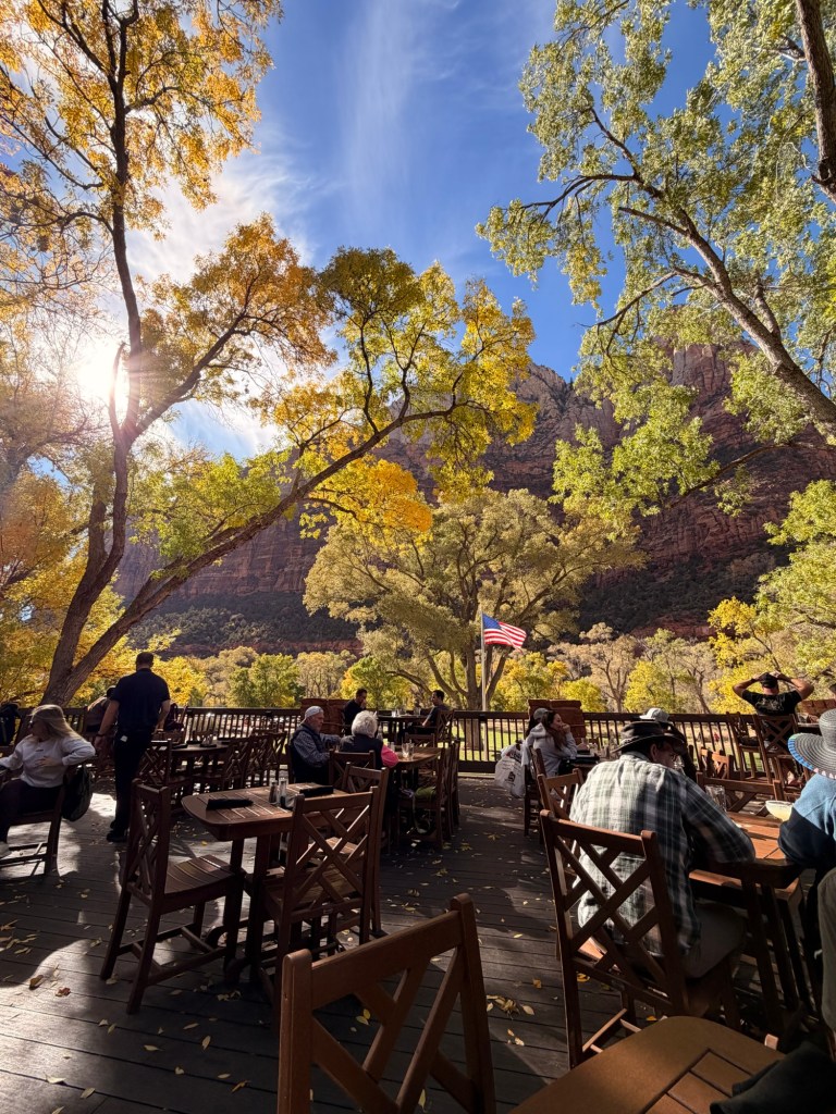 Around lunchtime, we headed to the lodge to get some cell service and check in with Caroline. She was still working, so we grabbed a table for three and enjoyed our final lunch on the patio.