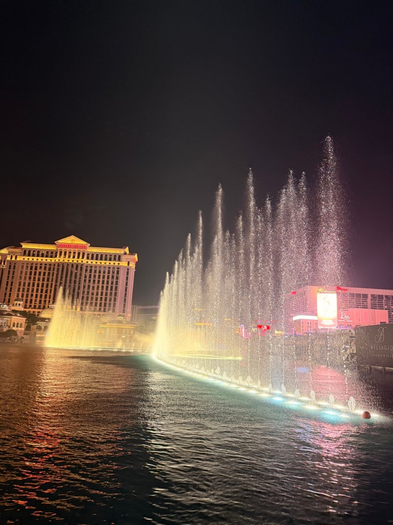 After dinner, we headed to the Bellagio Fountains because we were essentially speed-running Vegas in one night, and that felt mandatory. After watching a show and taking photos as proof we were there, we made our way toward Caesar’s Palace, which we decided would be our casino of choice.