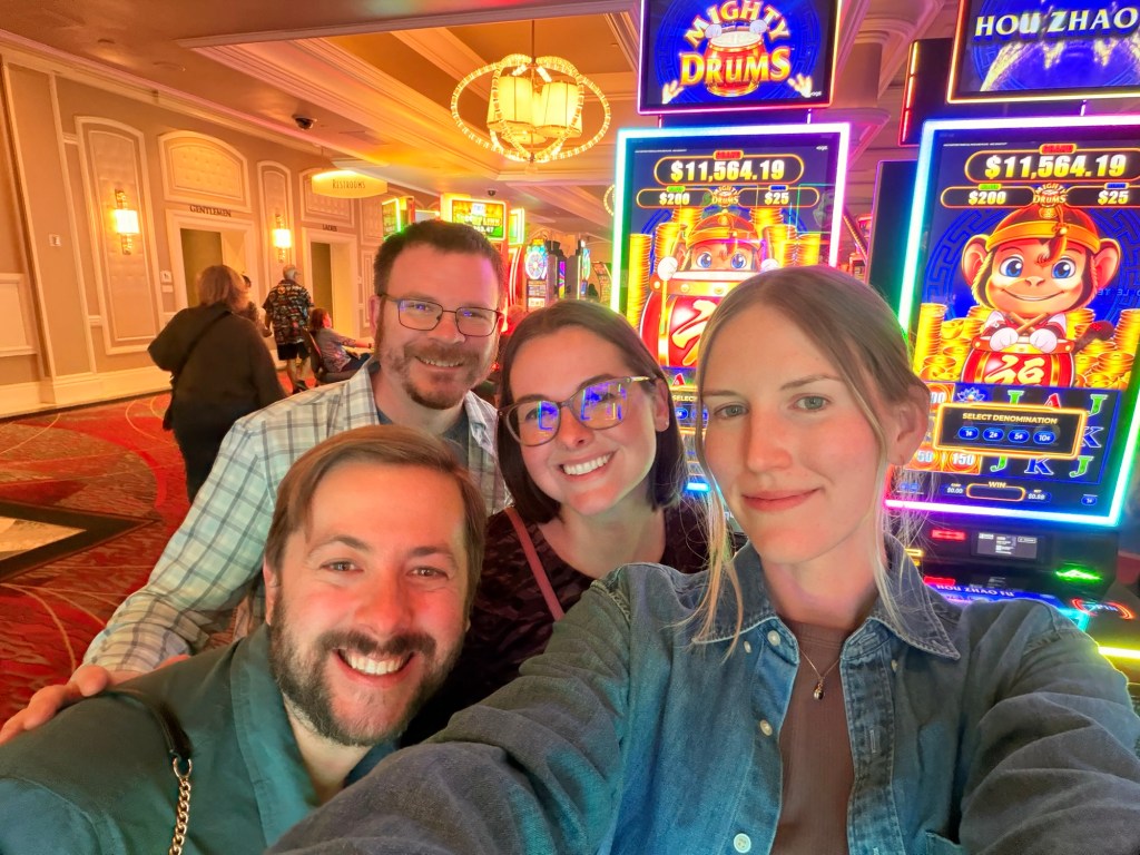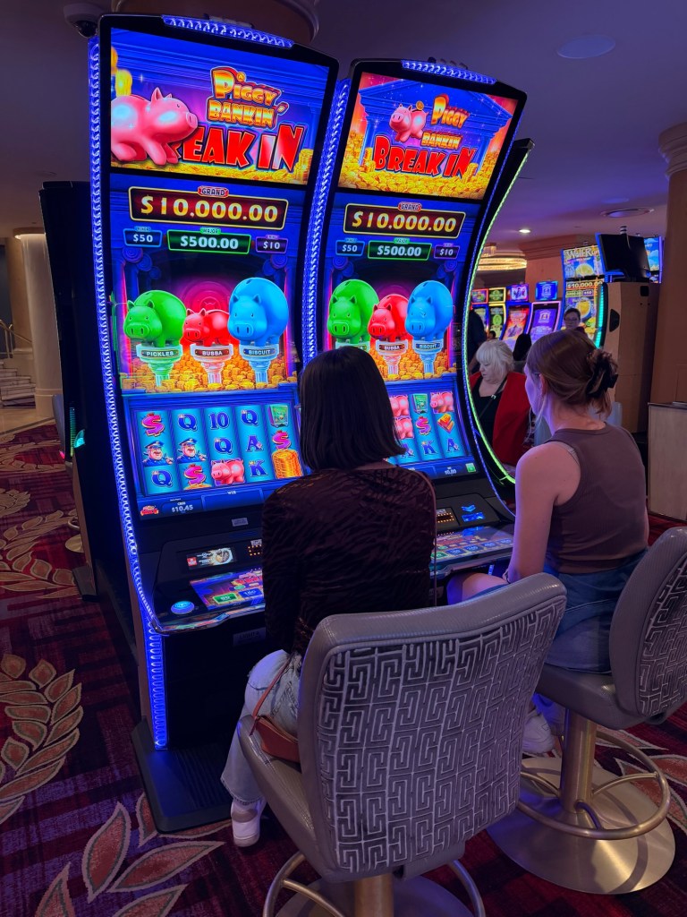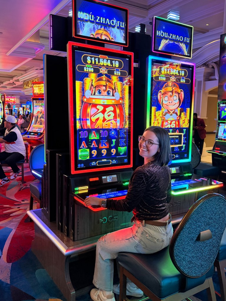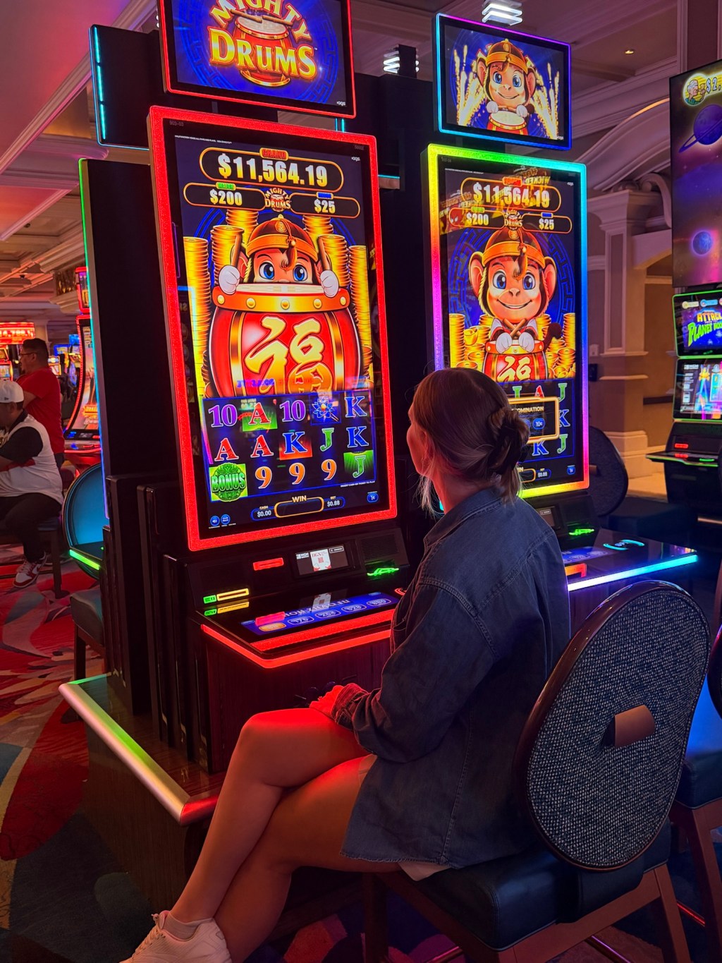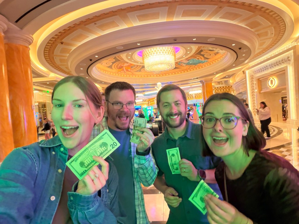 Caroline and I wandered around looking for the cutest slot machines, and somehow I managed to turn that twelve dollars into sixty. A little luck and some well-timed advice from Jordan helped, but we decided not to push it. Around 10:15 p.m., we called it a night, especially with a 7:00 a.m. flight waiting for us in the morning.