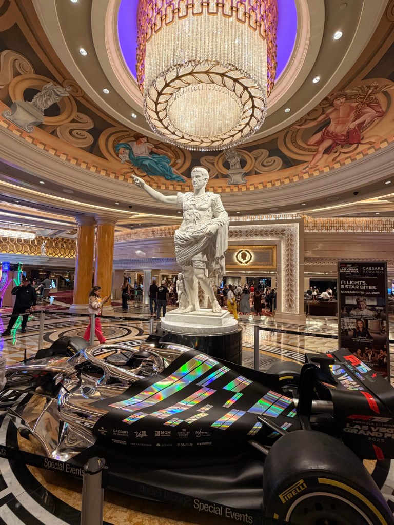 Because of street and sidewalk closures for upcoming F1 construction, we tried to walk through the Bellagio to get there. That turned out to be a mistake, because navigating those hotels is wildly confusing. After several wrong turns and plenty of photo stops, we finally made it to Caesar’s Palace.