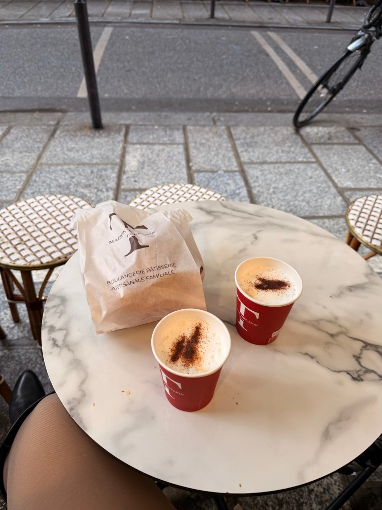 We decided to branch out this morning and skipped Paul’s for once. After asking the concierge for a recommendation, he pointed us toward Maison Thévenin. We ordered pain au chocolat, a ham quiche, and of course cappuccinos. Everything was très bien.
