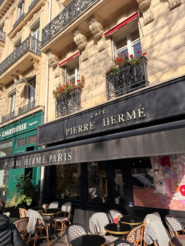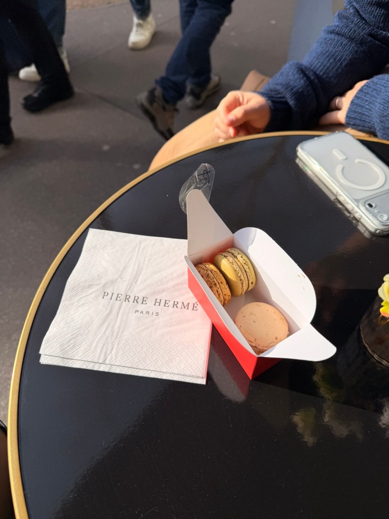 After breakfast, we headed over to Pierre Herme, which is supposed to have the best macarons according to our guide from Versailles. Everything looked so good in their display case. We were still pretty full from our cafe visit, but we had to get a couple macarons to try at least. They were as good as they looked.